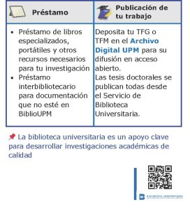 Deposita tu TFG o TFM en el Archivo Digital UPM para su difusión en acceso abierto. Las tesis doctorales se publican todas desde el Servicio de Biblioteca Universitaria.