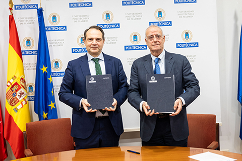 El rector de la Universidad Politécnica de Madrid (UPM), Óscar García Suárez, y el CEO de Acre, Pedro Martín Delgado Gómez, han presentado la cátedra ACRE- UPM cuyo ámbito de conocimiento será el de las técnicas geomáticas y geoespaciales aplicadas a la ingeniería mediante el uso de sensores embarcados en drones. Estará ubicada en la Escuela Técnica Superior de Ingenieros en Topografía, Geodesía y Cartografía (ETSITGC).