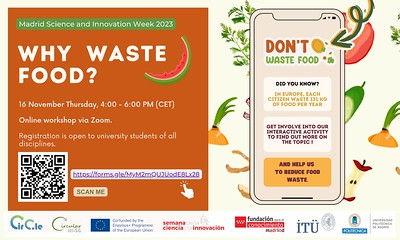 ZERO HUNGER – WHY WASTE FOOD? | Date & time: Thursday, November 16, 2023, 4:00-6:00 PM (CET)| Place: Zoom (online activity)| Language: English| Participants: University students of all disciplines and levels| Registration: By Wednesday, November 15, 12:00 AM (CET) ZERO HUNGER is a gamification activity organized in the framework of the Madrid Science and Innovation Week 2023, which…