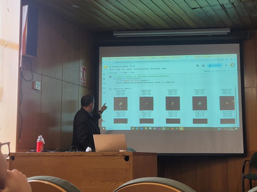Durante la ponencia, como indica el título de ésta, se explicó cómo la inteligencia artificial, junto con herramientas de programación, a partir de imágenes de galaxias que proporcionemos al código, las analiza y permite identificarlas y clasificarlas.