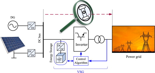 Fuente: Sundaramoorthy, K., Thomas, V., O’Donnell, T. et al. Virtual synchronous machine-controlled grid-connected power electronic converter as a ROCOF control device for power system applications. Electr Eng 101, 983–993 (2019).