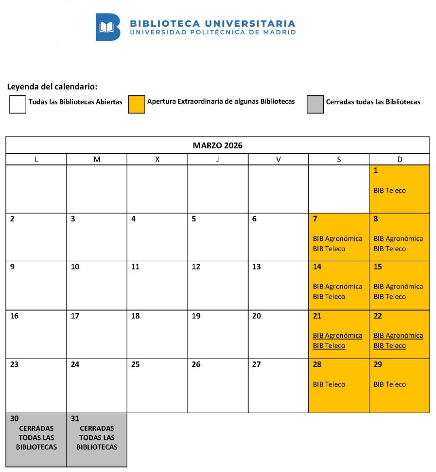 Bibliotecas UPM abiertas fines de semana y festivos en marzo