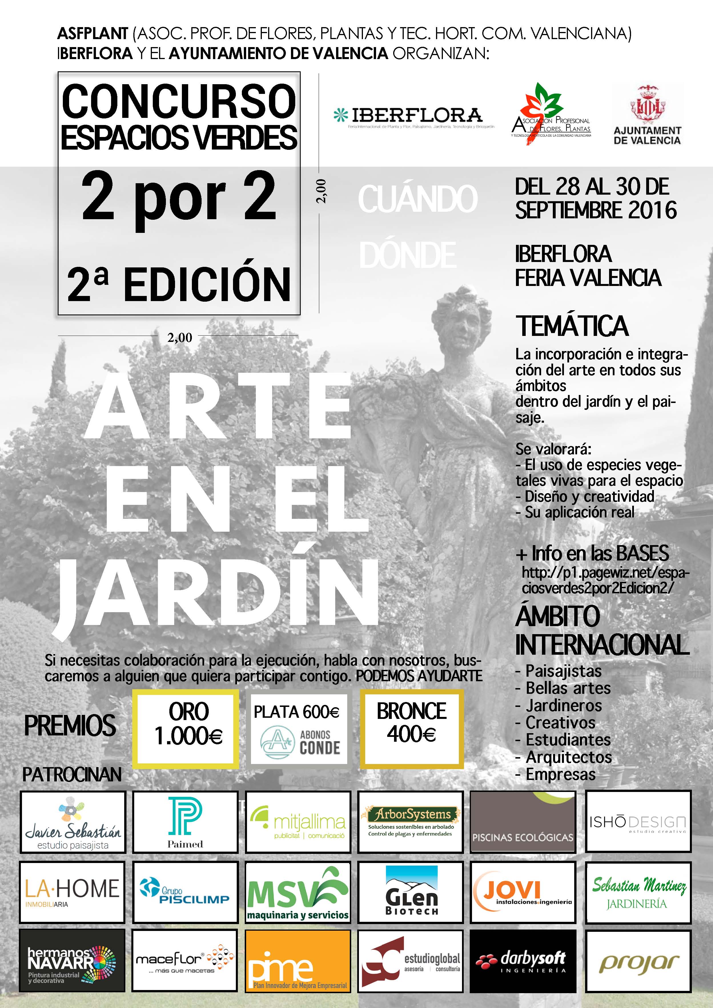 Nos ha llegado información sobre la 2ª edición del Concurso de "Espacios Verdes 2por2" que se celebrará en Iberflora (Valencia) del 20 al 30 de septiembre de 2016.
