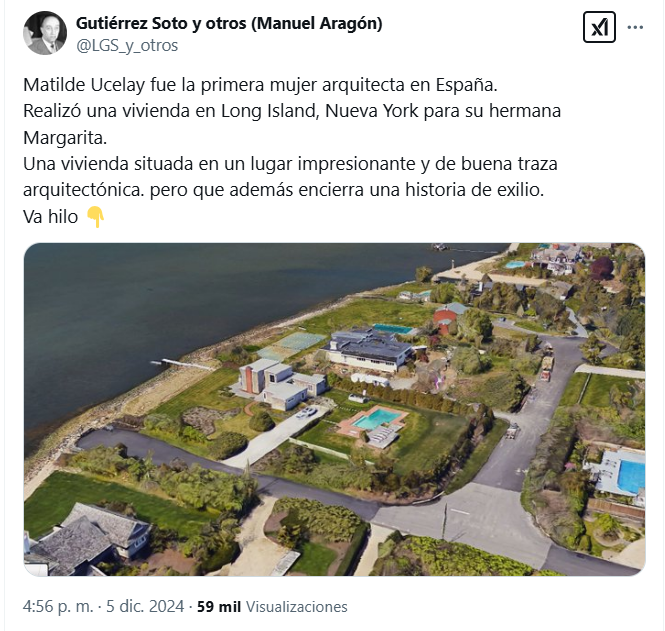 Muy interesante y bien documentado hilo de Twitter sobre Matilde Ucelay, pionera de la arquitectura española y titulada por la ETSAM UPM, realizado por la cuenta Luis Gutiérrez Soto y otros (Manuel Aragón).