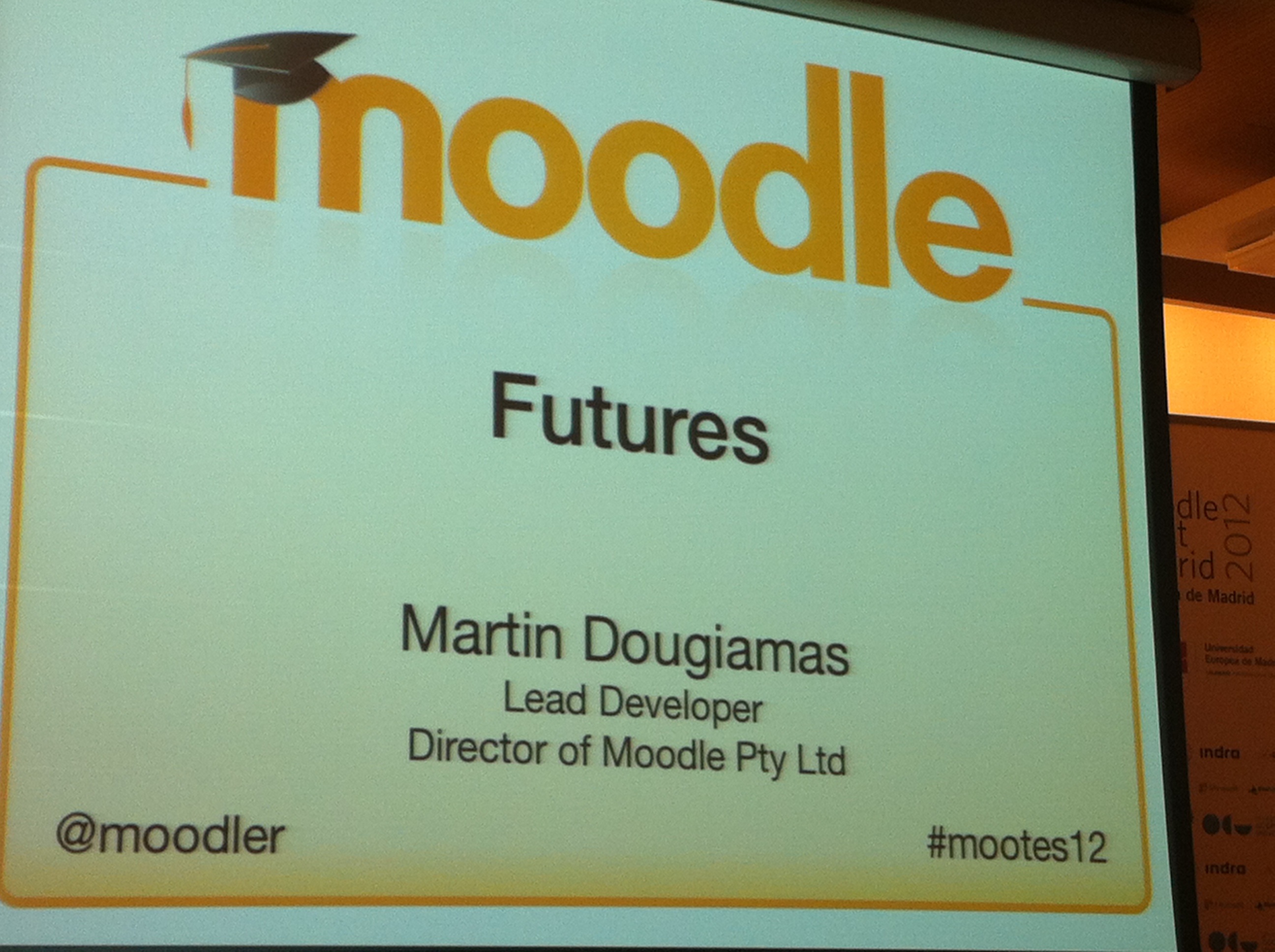 Martín nos presentó las característas de Moodle 2.3 y las futuras novedades de las próximas versiones en la Conferencia Inaugural, en la que hizo un pequeño repaso a los inicios de Moodle y al porqué de usarlo.