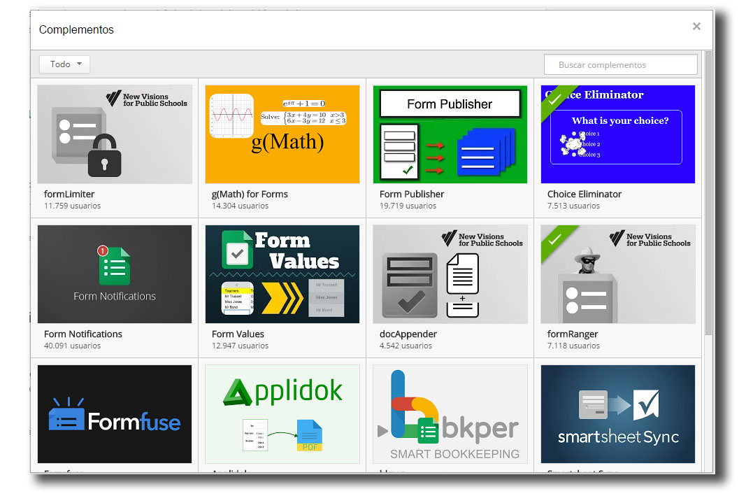El gigante buscador, ha incorporado a esta práctica aplicación, la posibilidad de añadir complementos externos para agregar nuevas funcionalidades a la ya d por si potente herramienta de formularios de Google.