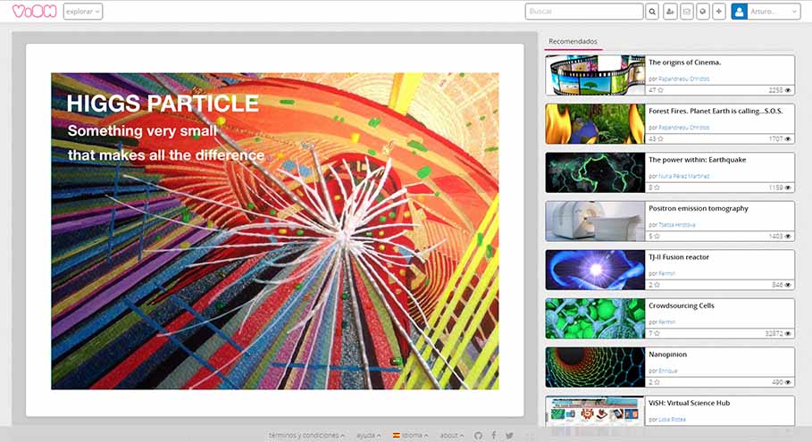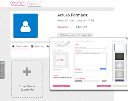 Son muchas las aplicaciones que podemos encontrar en internet y que nos facilitan la tarea de crear nuestros contenidos educativos que luego utilzaremos en nuestros cursos. Hoy vamos a conocer VISH. Esta herramienta, tal y como la definen sus creadores es una red social colaborativa centrada en la creación y compartición de recursos educativos para la realización de actividades didácticas. En su web se pueden encontrar una gran cantidad de presentaciónes (o como se denominan dentro de VISH, "excursiones"). Todo este material didactico es reutilizable y esta distribuido bajo la licencia que el autor decida, siendo la gran mayoría licencias Creative Commons. Para utilizar un contenido publicado en VISH, basta con encontrarlo y bien, visualizarlo directamente desde vish.org o bien compartiendo el contenido a través de su url o de su codígo de incrustación utilizarlo en nuestro proyecto.