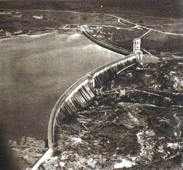Figura 3: Embalse de Santillana (Madrid). Antiguo muro de presa y torre neogótica (año 1906.