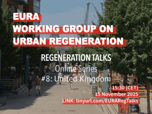 We are happy to announce the next EURA Urban Regeneration Talk that will take place online on November 17th, 2025 15:30 (CET). This EURA event is launched in the context of the EURA Working Group on Urban Regeneration cochaired by Karsten Zimmermann and Sonia De Gregorio Hurtado.