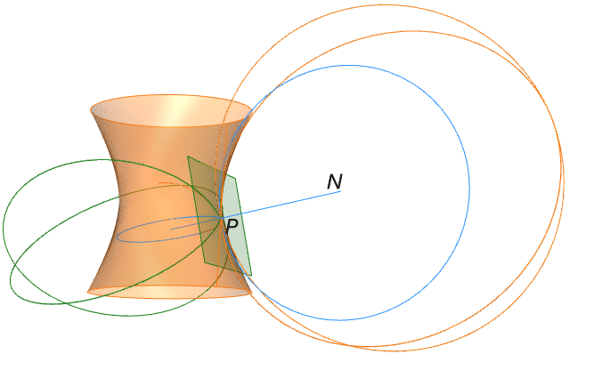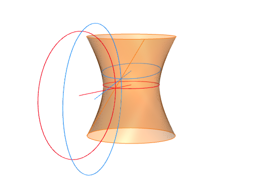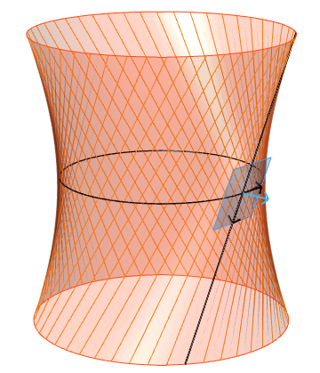 Nótese también que los puntos de la línea de estricción del hiperboloide hiperbólico (Figura 18) son precisamente aquellos en los que la forma de la superficie es “más curva”. Dada la importancia del concepto de curvatura, dedicaremos la sección 3.2 al estudio de la noción de curvatura en superficies y veremos a qué nos referimos con “más curva”.