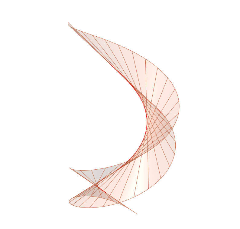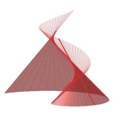 Si observamos la superficie en Figura 19, no es tan fácil intuir si es desarrollable o no. Por tanto, en general, nos interesa tener una fórmula para que, a partir de la parametrización de la superficie, se pueda asegurar si es o no desarrollable.