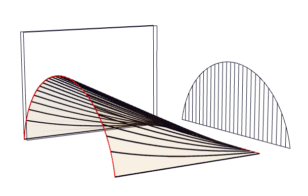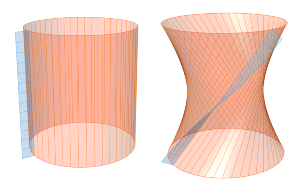 Al igual que una curva se puede pensar como el rastro que deja un punto que se mueve en el espacio, una superficie reglada la podemos pensar como el rastro que deja un segmento (o una recta) que se mueve en el espacio (Figura 6).