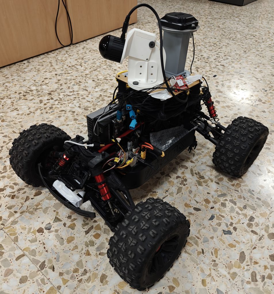 Plataforma móvil basada en RC destinada a realizar análisis de la marcha en condiciones de carrera. Utiliza datos GNSS para registrar una matriz de puntos de ruta (waypoints) a través de la cual navegará durante el experimento de la marcha, con la ayuda de un sensor LiDAR 3D que vigila obstáculos o peligros inesperados. Este robot porta un sensor de profundidad estéreo capaz de detectar esqueletos humanos incluso en entornos exteriores mediante el uso de la cámara ZED X, de forma similar a como funcionan los ojos humanos. Debido a las altas velocidades que alcanzará este robot, se ha implementado un sistema de seguridad con el cual el operador puede anular el control de forma inalámbrica en caso de emergencia.