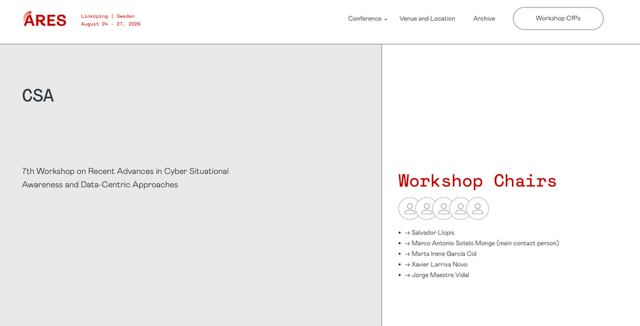 We are launching the 7th edition of the Workshop on Recent Advances in Cyber Situational Awareness and Data-Centric Approaches (CSA), organized as part of the 21st International Conference on Availability, Reliability and Security (ARES 2026).