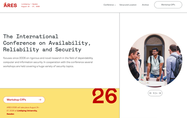 The ARES 2026 Conference will take place from 24–27 August 2026 in Linköping, Sweden.